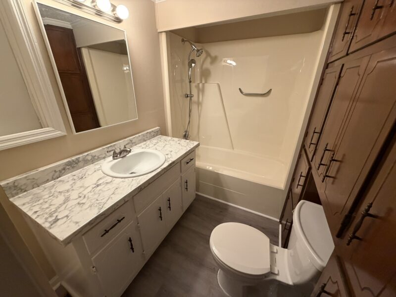 Updated 3 bedroom, 2 bath home featuring a spacious family room with a decorative faux fireplace, a large kitchen with ample cabinetry and a bright breakfast area, a comfortable master suite with dual closets and a private bath with shower, two guest bedrooms sharing a hall bath with one of the guest bedrooms showcasing a charming faux fireplace, adding extra character to the space. Additional highlights include a dedicated laundry room, a single-car garage with automatic opener with additional parking located in front of the home and a storage building providing extra space for tools or seasonal items. A well-designed layout and recent updates make this home move-in ready and easy to enjoy.
